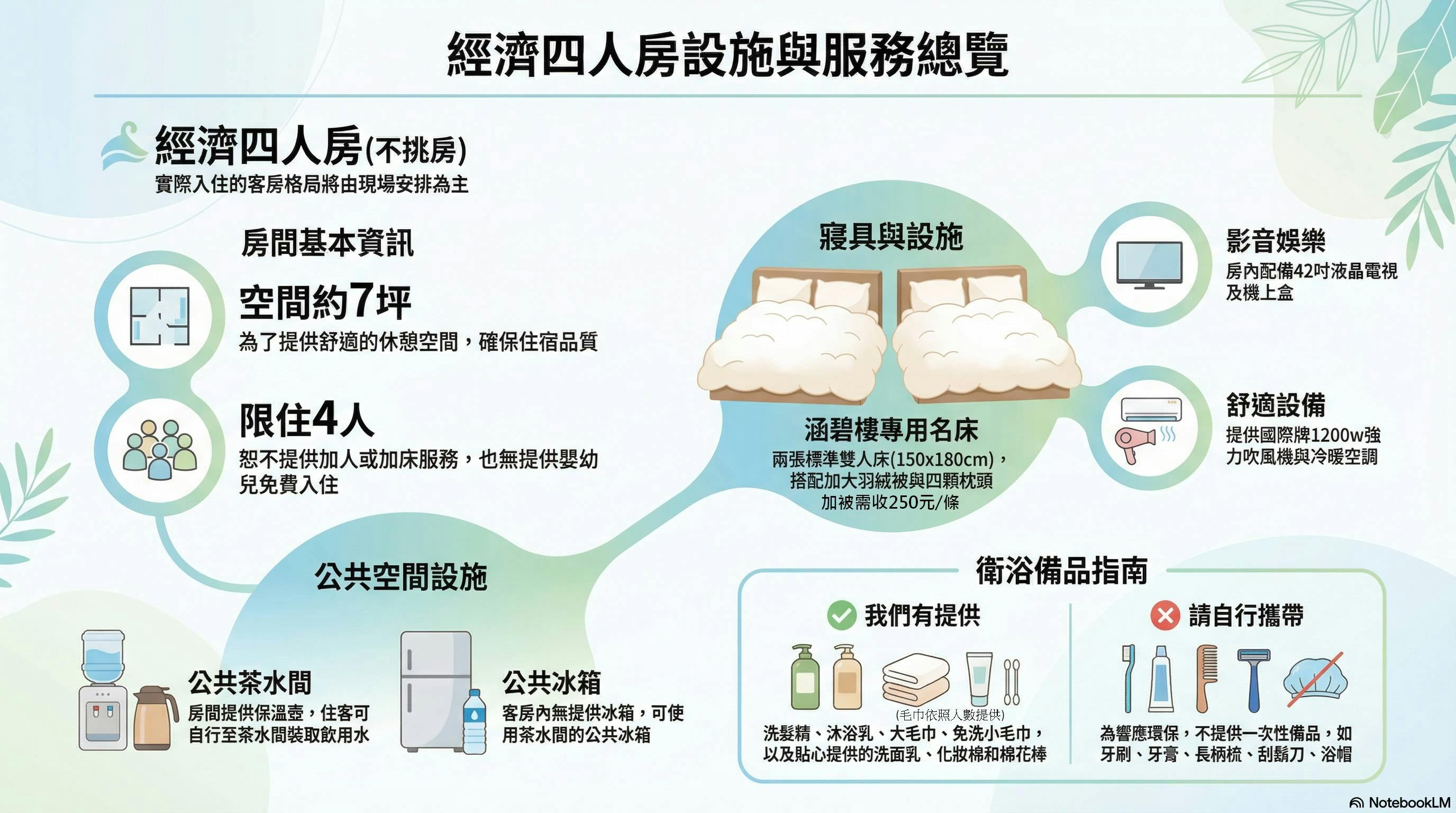 房間坪數約7坪,入住人數限四位(包括孩童及嬰幼兒)