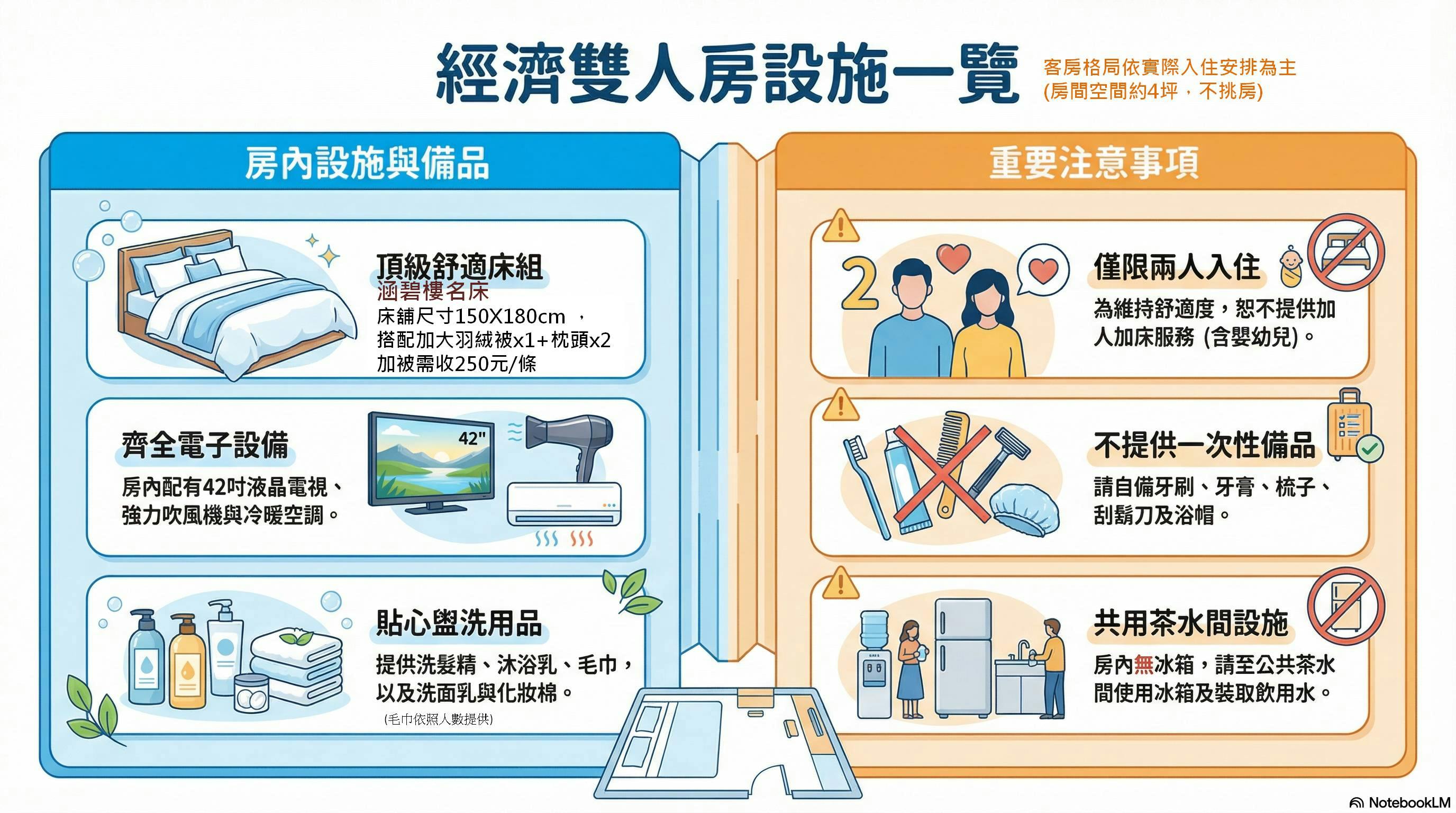 房間坪數約4坪,入住人數限兩位(包括孩童及嬰幼兒)