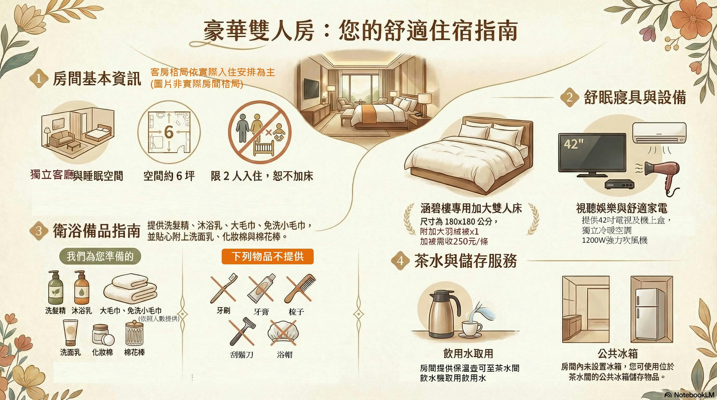 房間坪數約6坪,入住人數限兩位(包括孩童及嬰幼兒)